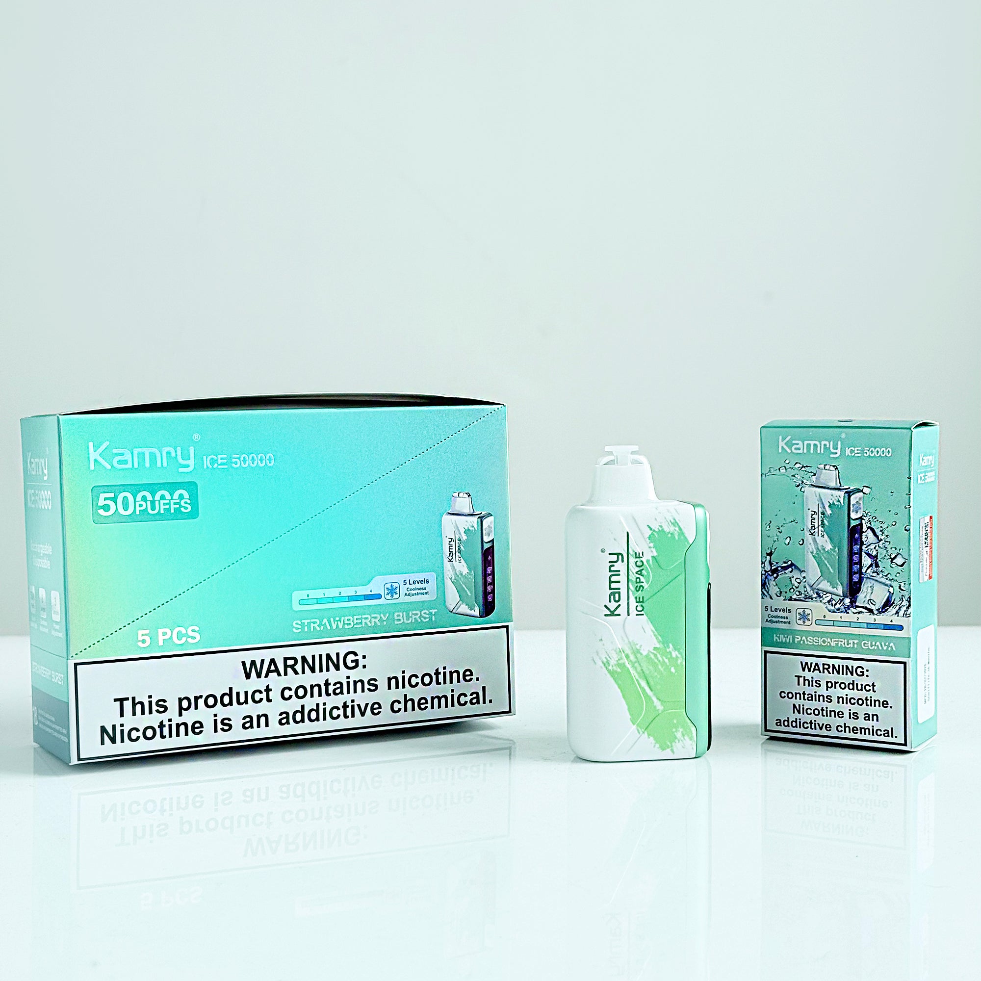 De Kamry Ice 50000 biedt je de vrijheid van een elektronische sigaret. Of je nu op zoek bent naar een ijskoude en zachte smaak, een rijke en sterke smaak, of een langdurige metgezel, deze elektronische sigaret voldoet aan al je behoeften - stijlvol en slim.