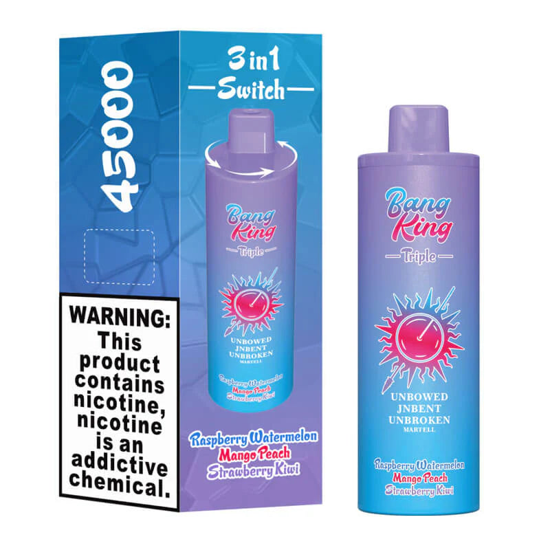 The Bang King Triple 45000 Puffs Disposable Vape redefines convenience with its innovative triple-pod system (15mL×3), 650mAh battery, and staggering 45,000 puffs. Designed for vapers who refuse to compromise on longevity or flavor, this device combines cutting-edge technology with user-friendly simplicity.
